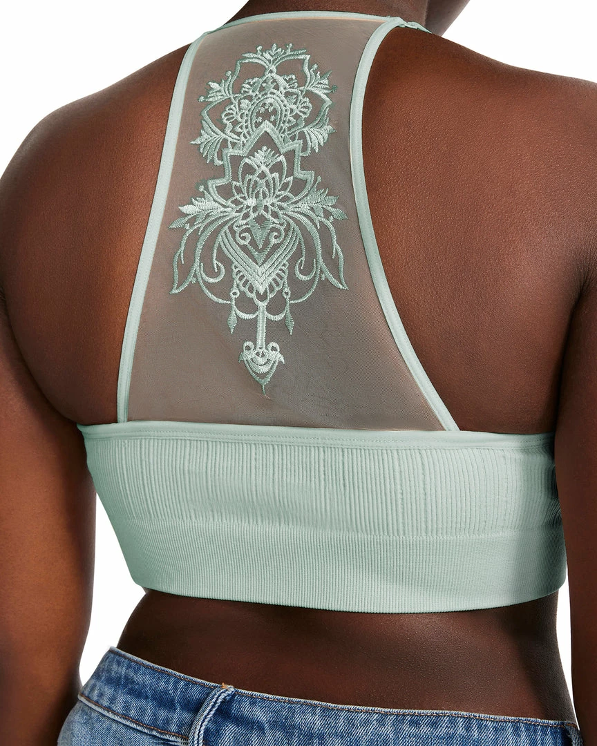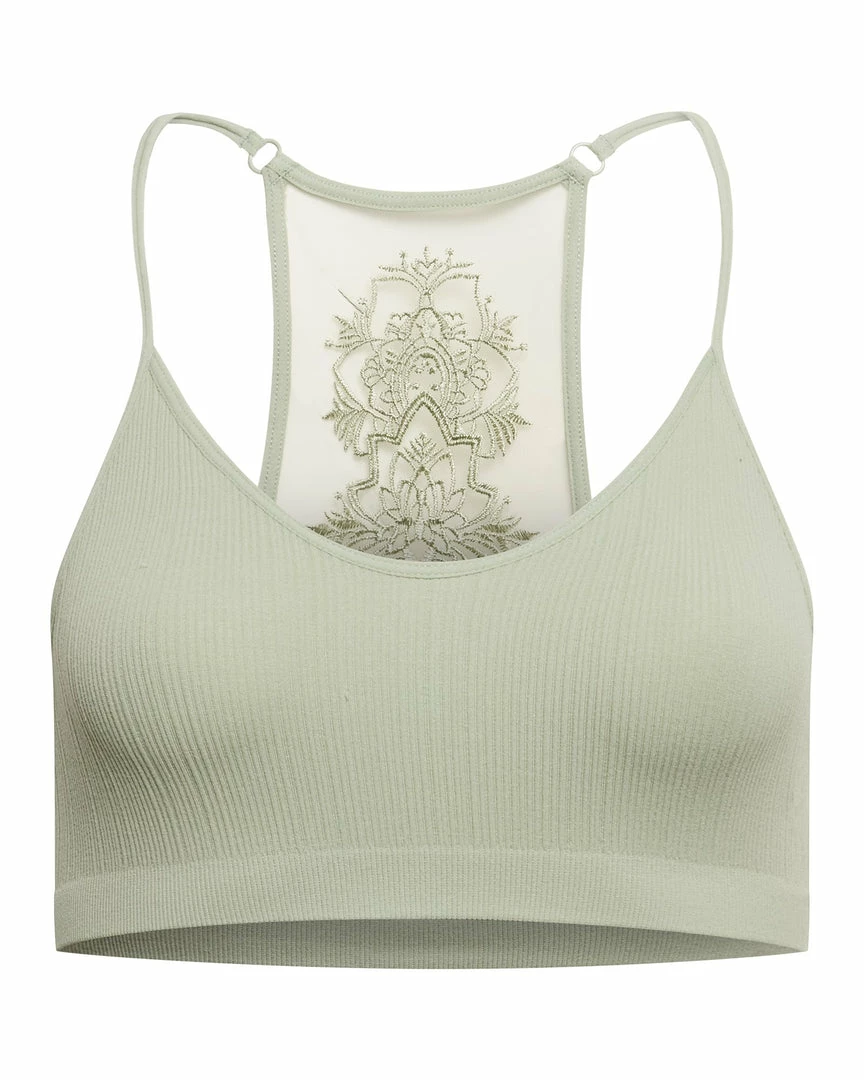 Align your chakras in this soft racerback bralette featuring intricate lace detailing.
