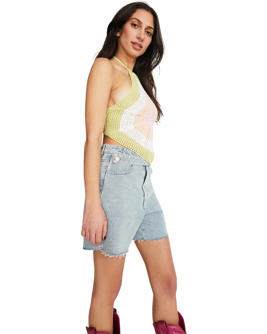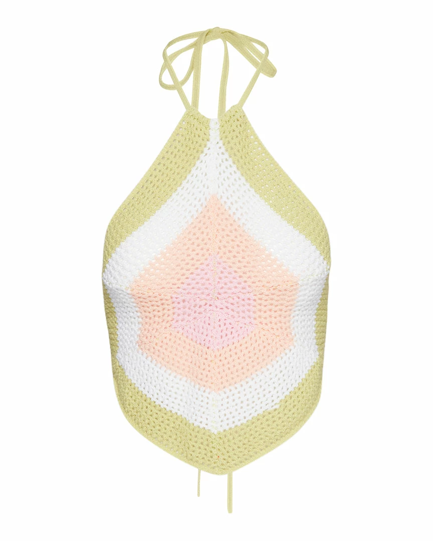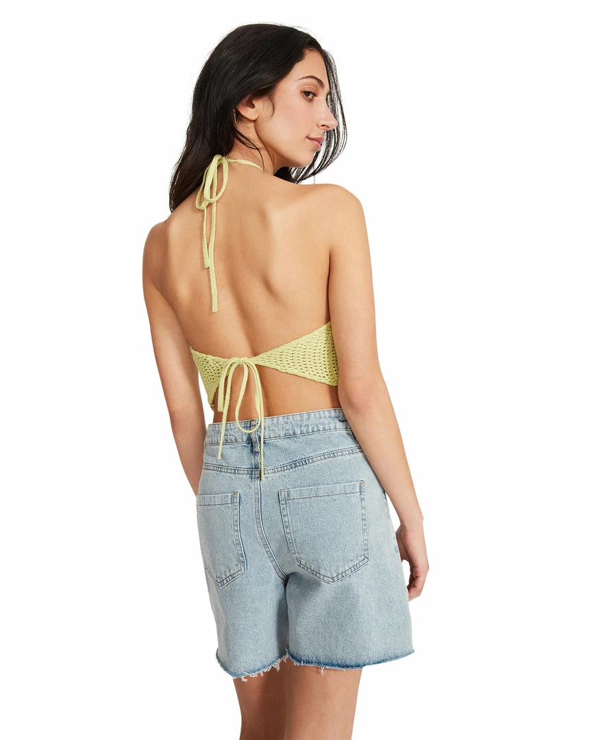 Turn up the heat in the Crochet Halter. This summertime-ready piece has an open-tie back, tie at the neck, and a soft crochet fabric.