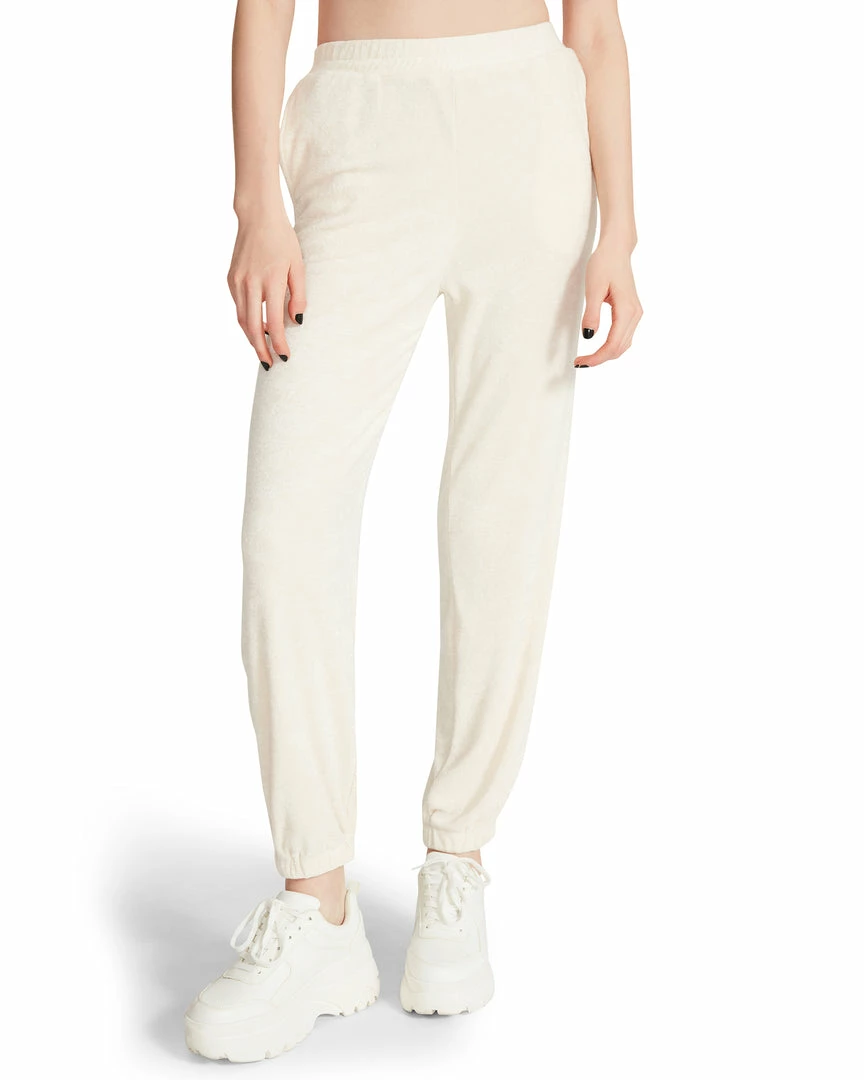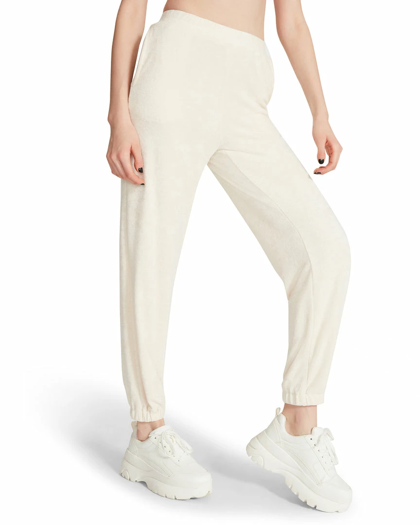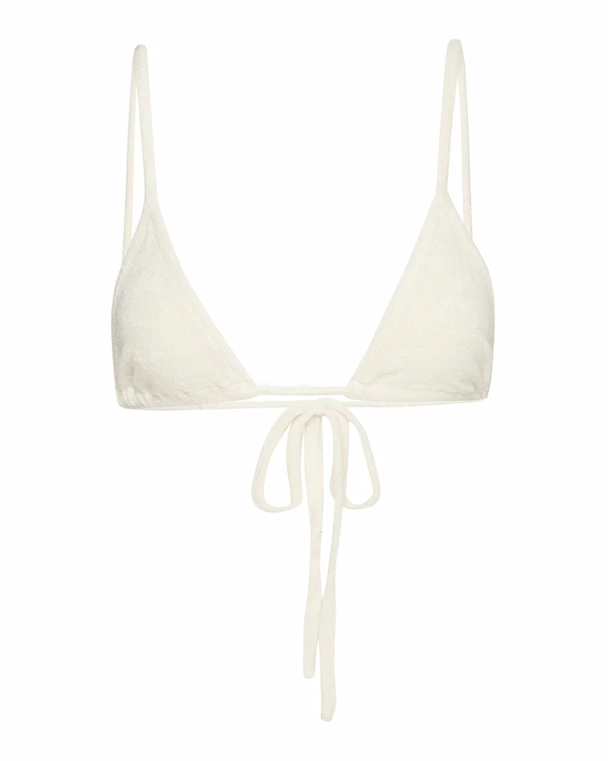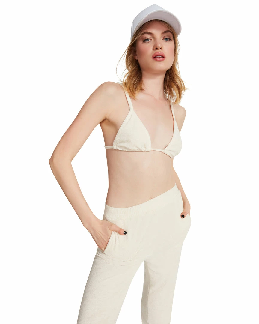 The Terry Cloth Set was made for lounging in your private cabana. This twosome features a tie back bikini top and high waisted pants with elastic gathering at the ankles.
