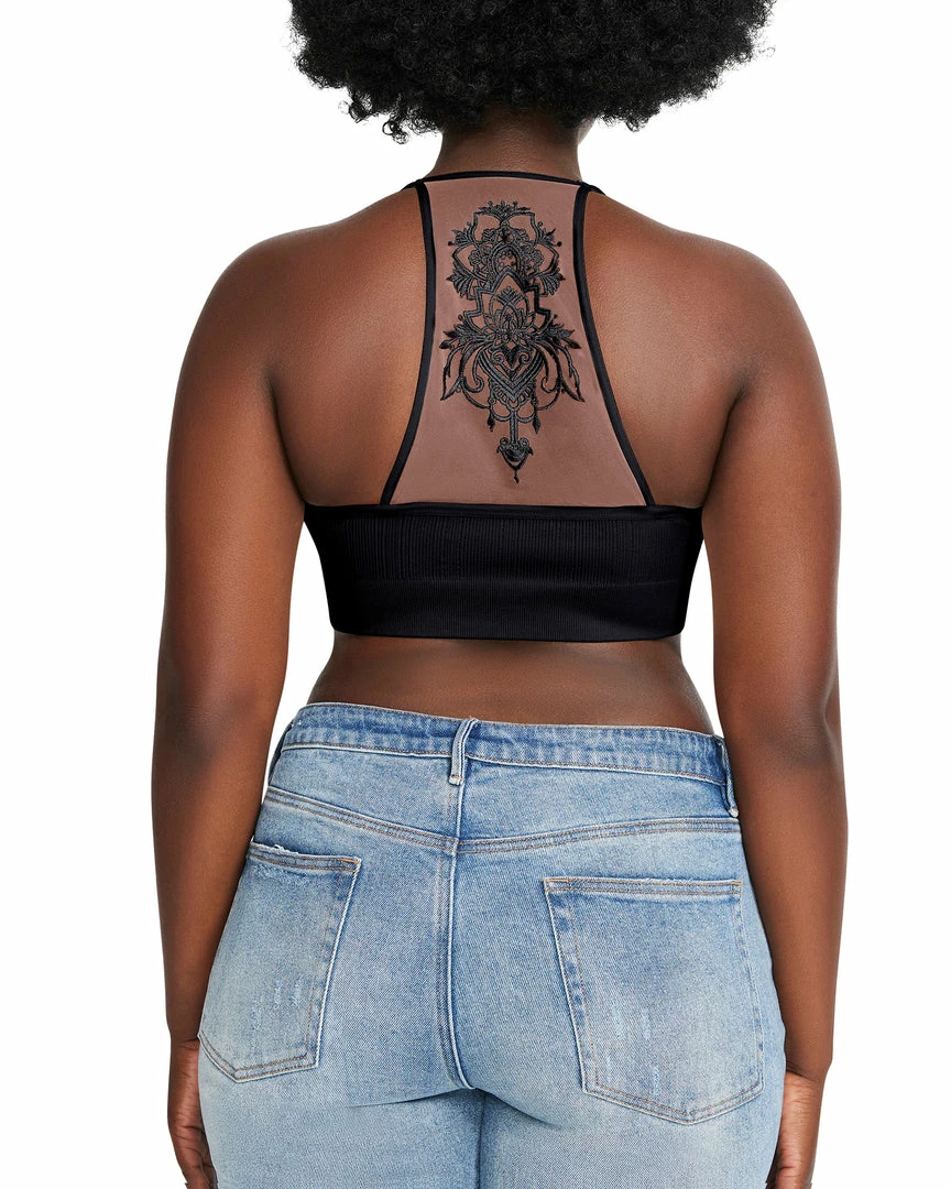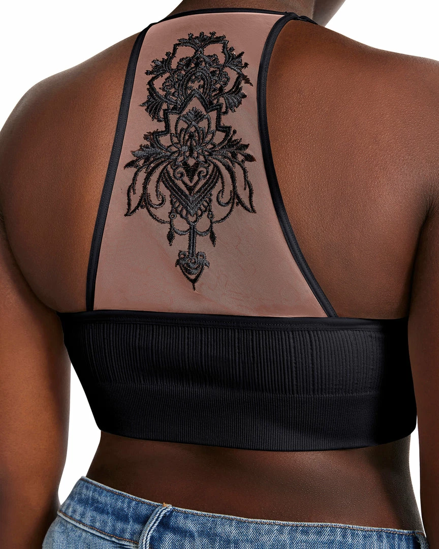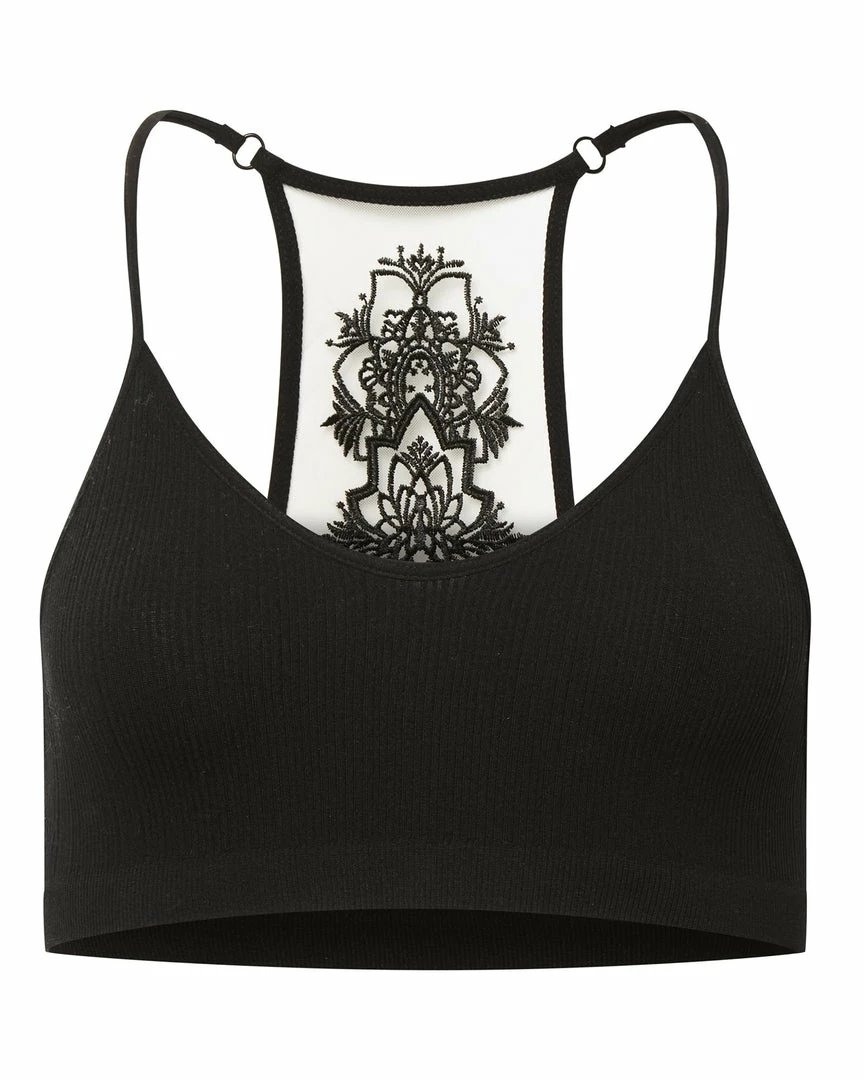 Align your chakras in this soft racerback bralette featuring intricate lace detailing.