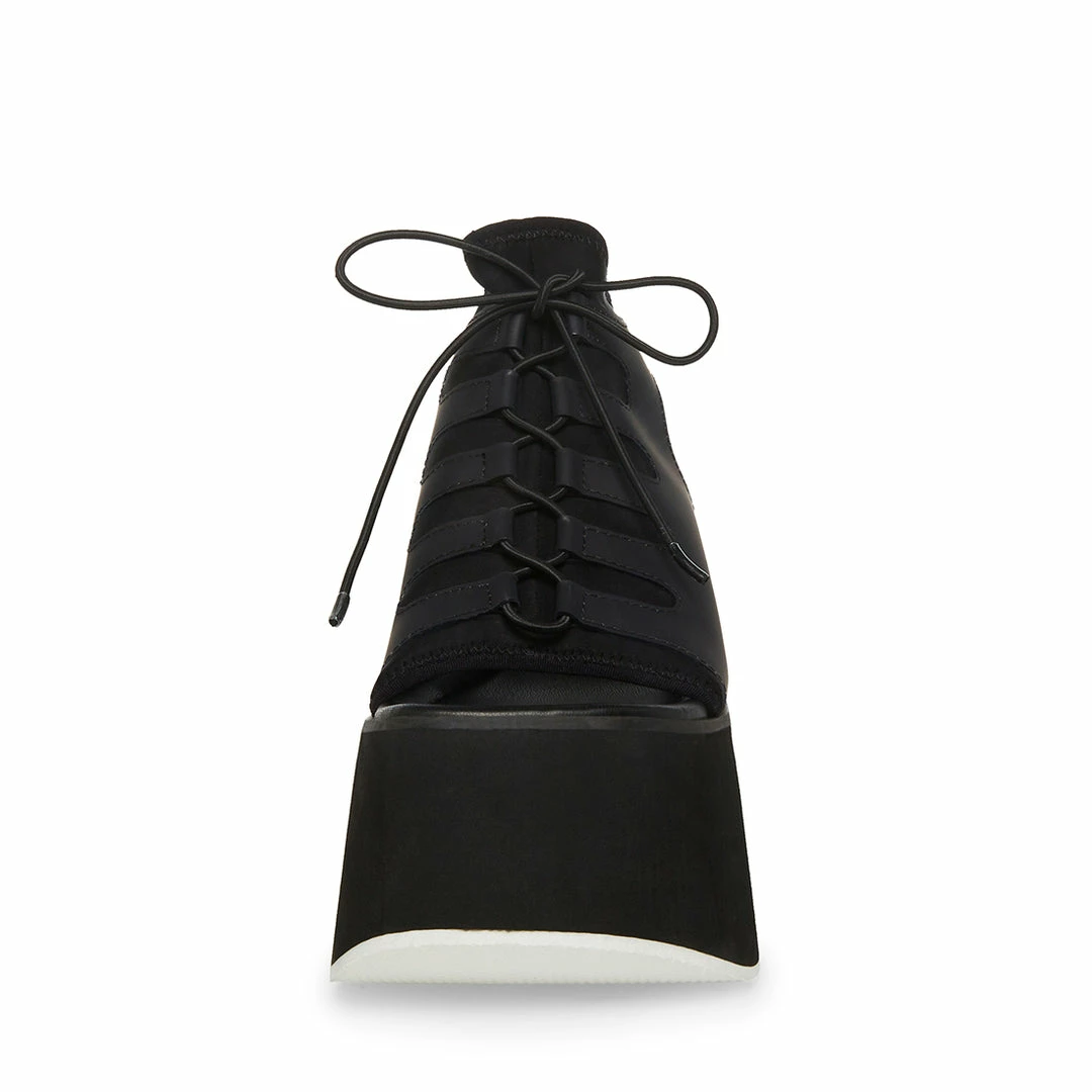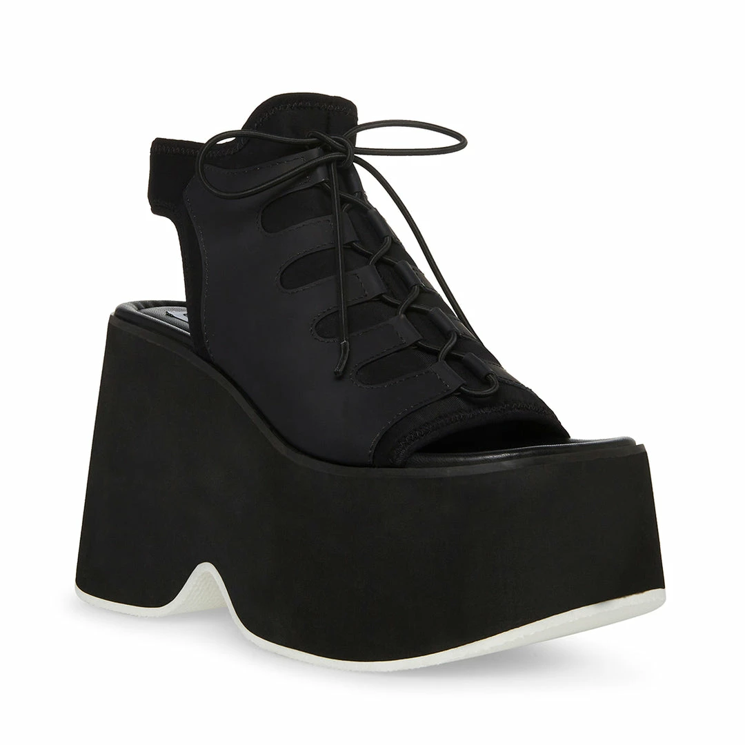Bold, futuristic lines define the DIANDRA sandals while the stretch laced front and generous platform keep them secure and comfortable.