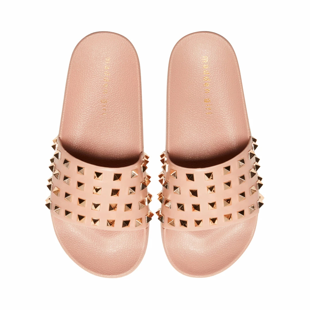 Sporty slide, meet spiky embellishment. This sandal’s easy feel and edgy look are a winning combo for warm weather strolls.