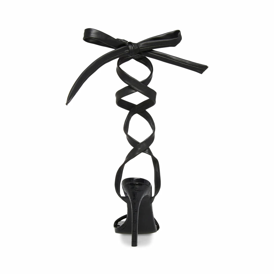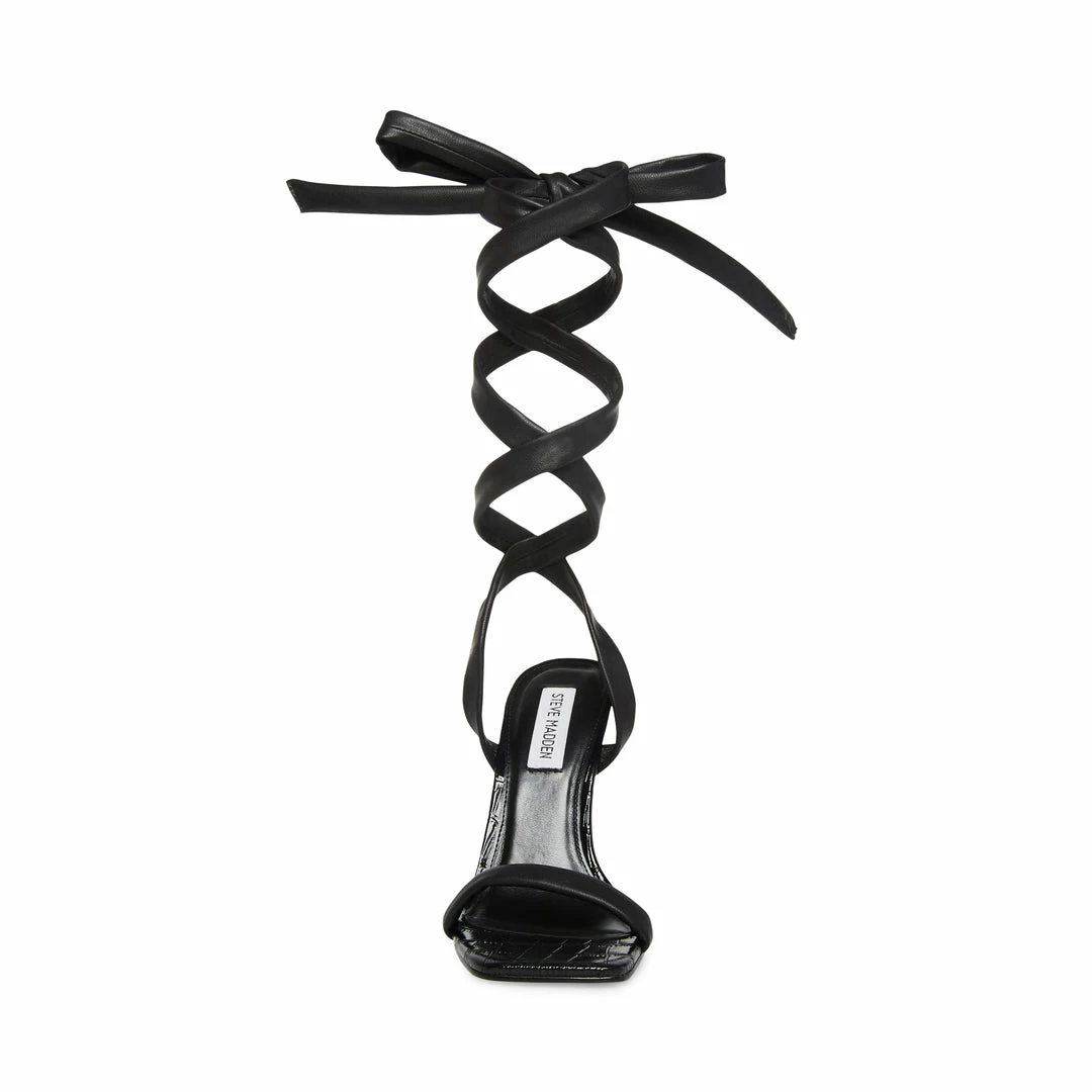 Wide wrap straps, a square toe, and a high stiletto heel define the UTILIZE sandal’s spare silhouette.