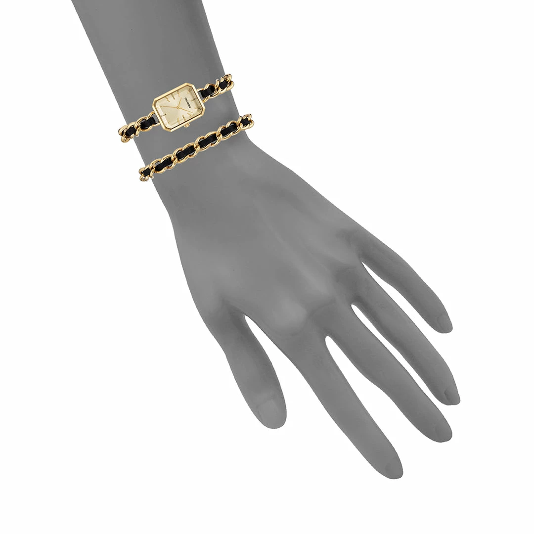 - Band: Nickel compliant goldtone, 1 pc box set: 1 chain bracelet w/black insert brass