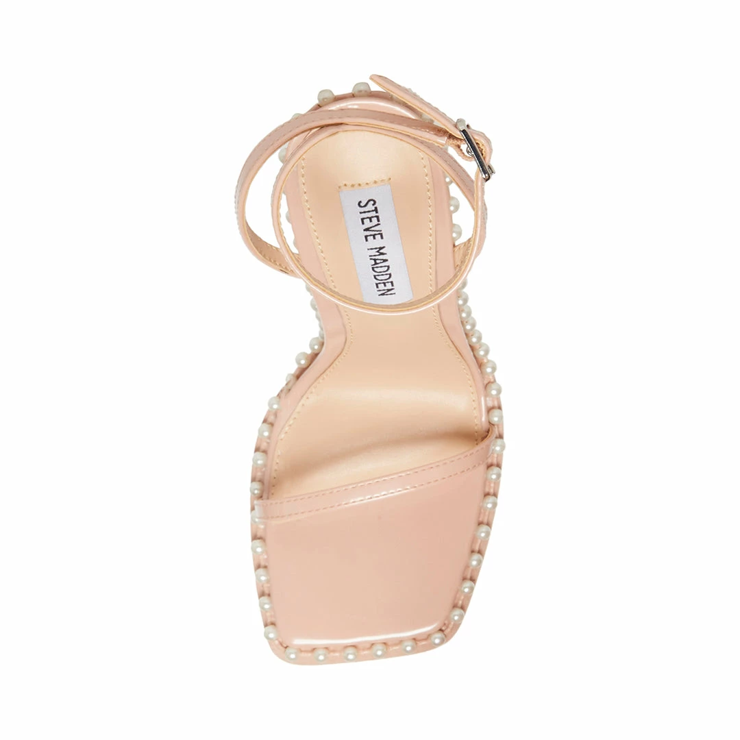 Let your footwear steal the spotlight with ZELLE-P. This sexy sandal features a pearl-trimmed sole, while skinny straps and a sky-high heel complete the look.